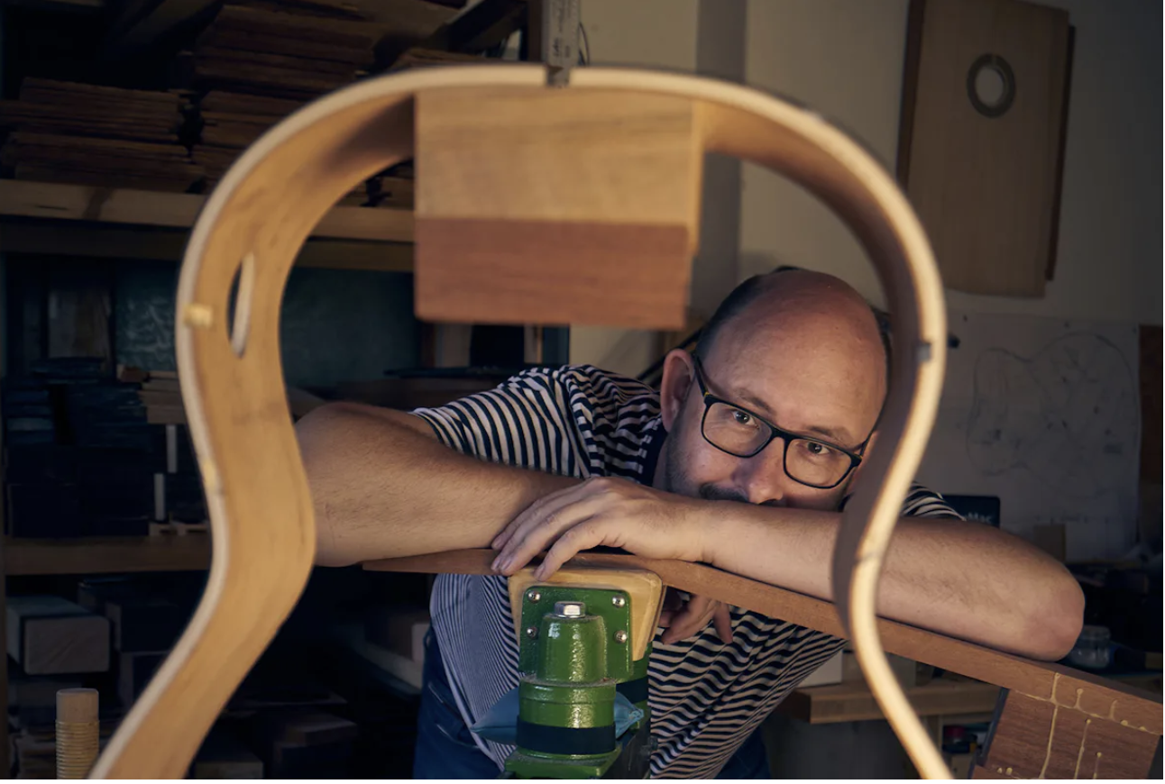A cycling tour across Europe can unfold in multiple ways. For Jiří Markalous it sparked the desire to start creating. He has been drawn to the art of guitar making since a very young age. Without hesitation, he ordered the necessary tools and embarked on a new journey: the transformation of raw wood into musical instruments. Creating art, for Jiří, serves as a means to communicate his message through the resulting product, aiming to bring joy to both clients and himself. In today's rapidly evolving world, saturated with information at our fingertips and a thriving market of guitar makers, Jiří
